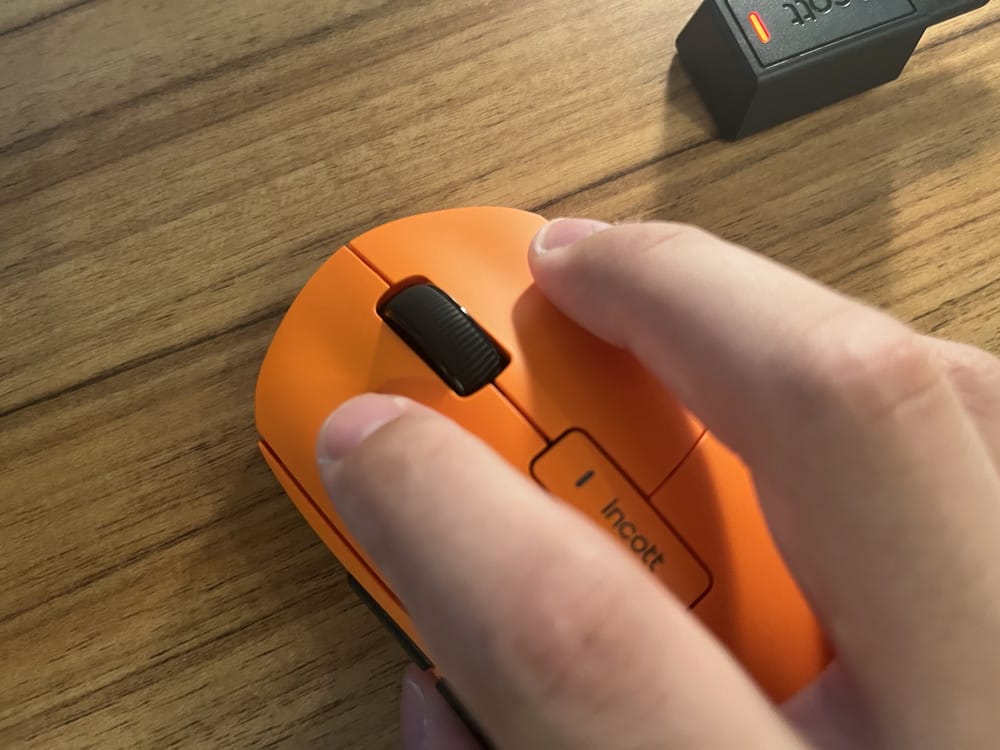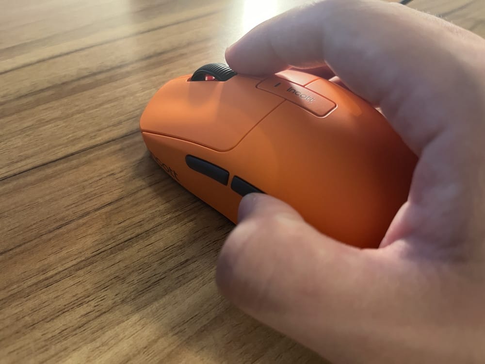 実際に『Incott G23 PRO』を手に持ってみると、あまりの軽量さに驚かされる。筆者が普段から試用しているワイヤレスマウスの半分以下の重さしかなく、マウスを持ったまま手を動かした際の手首への負荷が段違いに軽減された。