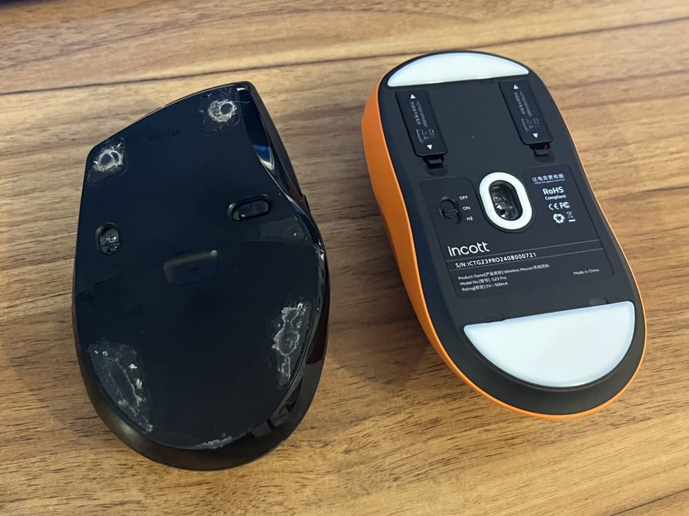 ▼筆者が普段使用しているロジクールのワイヤレスマウス(黒)と並べた様子。