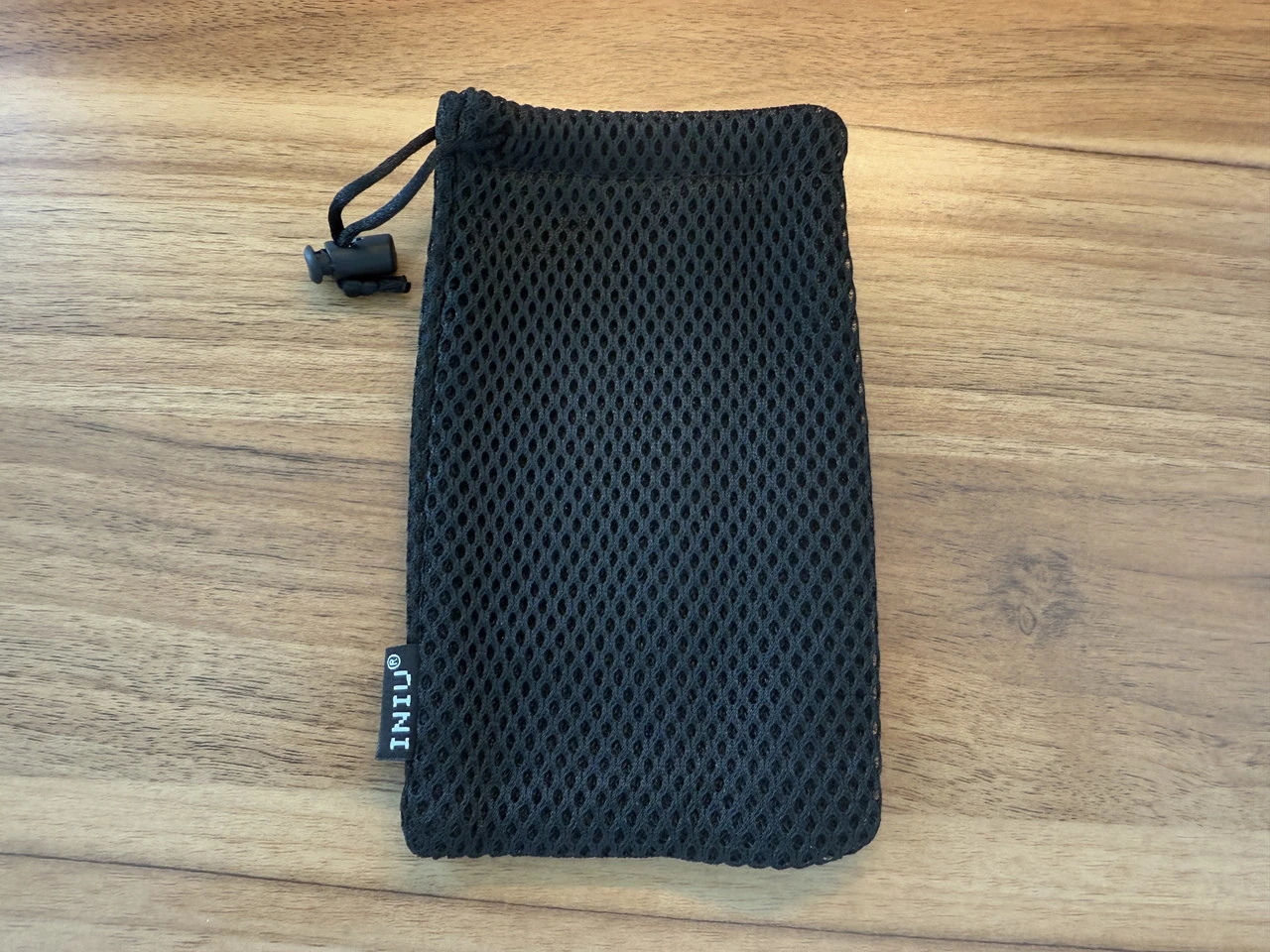 ▼専用ポーチが付属。モバイルバッテリー本体およびケーブルを入れて持ち運べる。