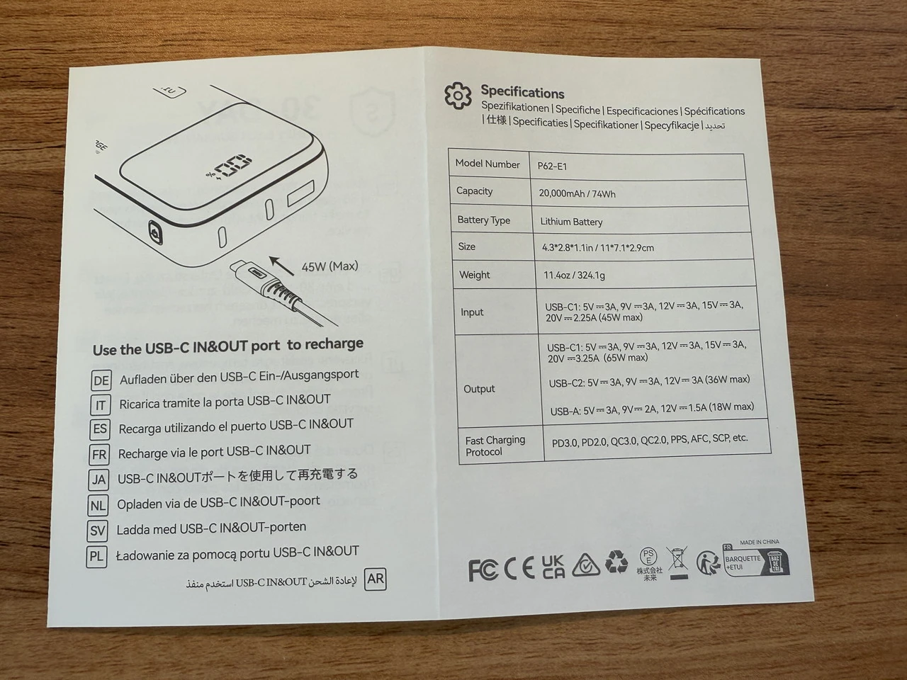 今回紹介した『INIU P62 モバイルバッテリー』について、特徴をまとめると以下の通りだ。