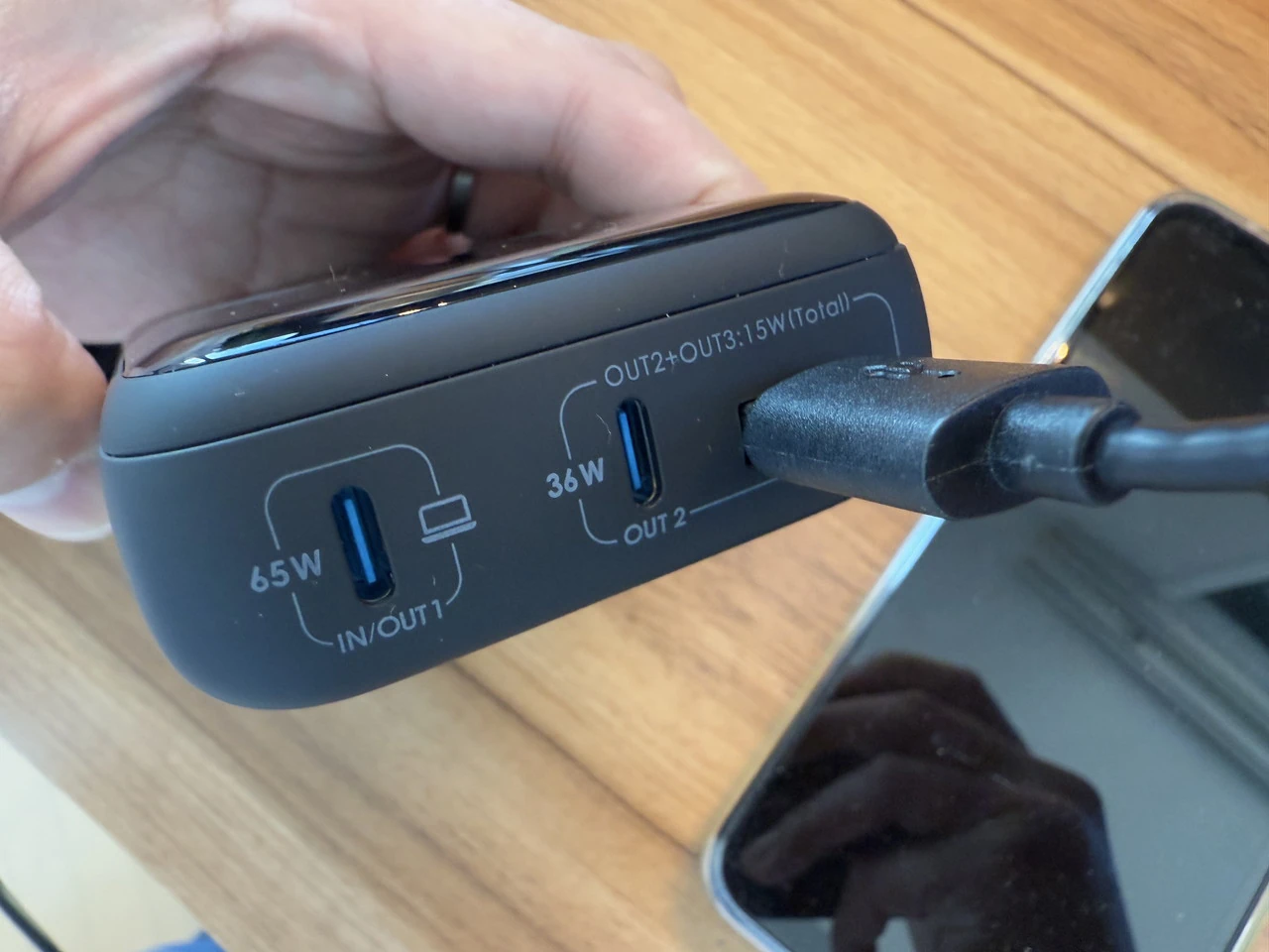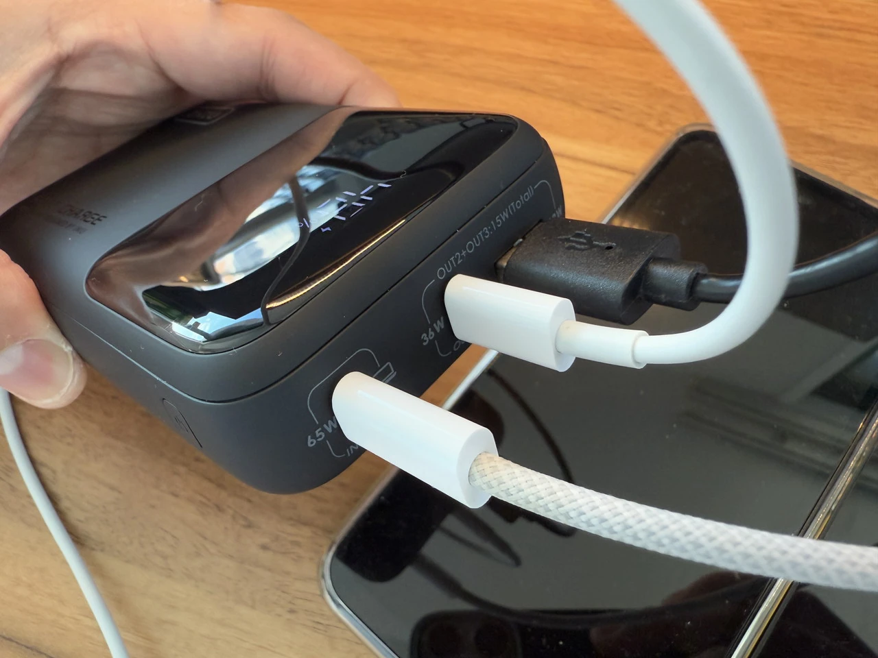 Type-Cポートのうち1つは最大65Wの急速充電に対応。わずか25分で、MacBook Air 13を41%、iPhone 16を56%まで充電可能だ。また、SamsungのSuper Fast Charging 2.0にも対応している。
