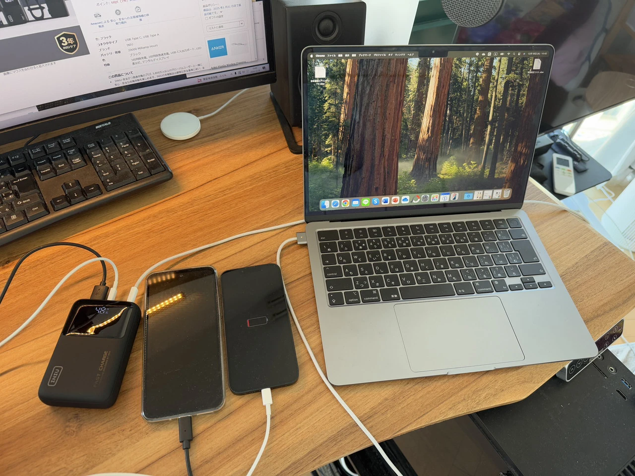 実際に3デバイスに対して同時に給電した場合でも、各デバイスの充電スピードが落ちることは一切なく、安定した充電を継続できていた。