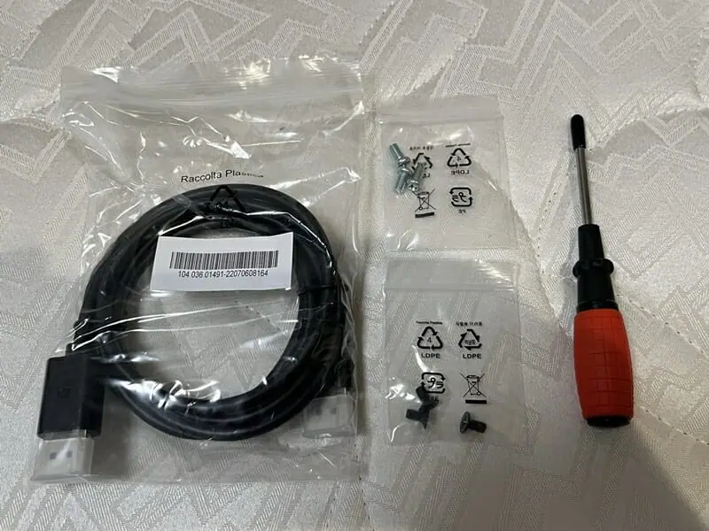 ▼スタンド&ベース取り付け用のビス&ドライバー、およびHDMIケーブルも付属。