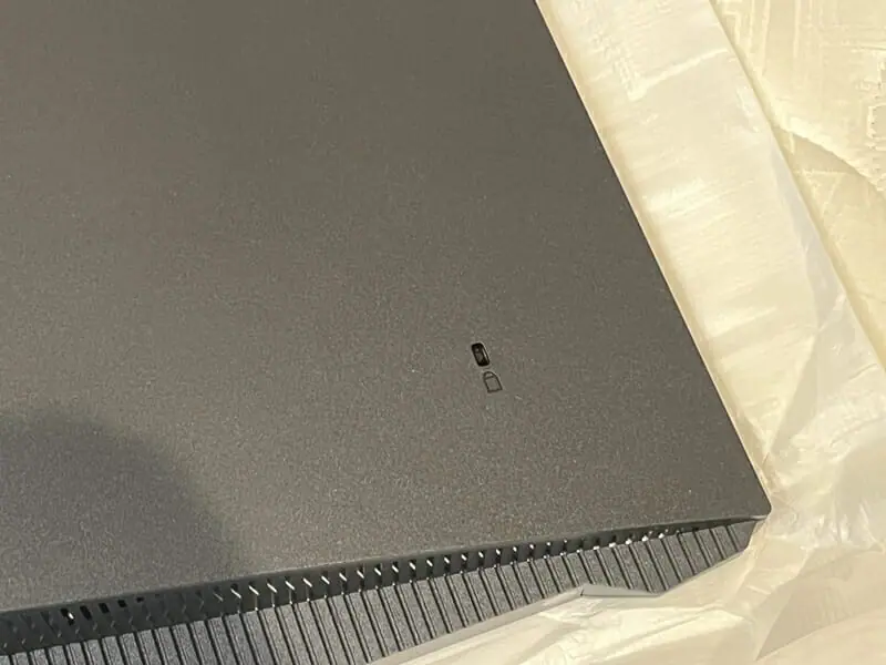 ▼背面右下には盗難防止用のロック穴が用意されている。