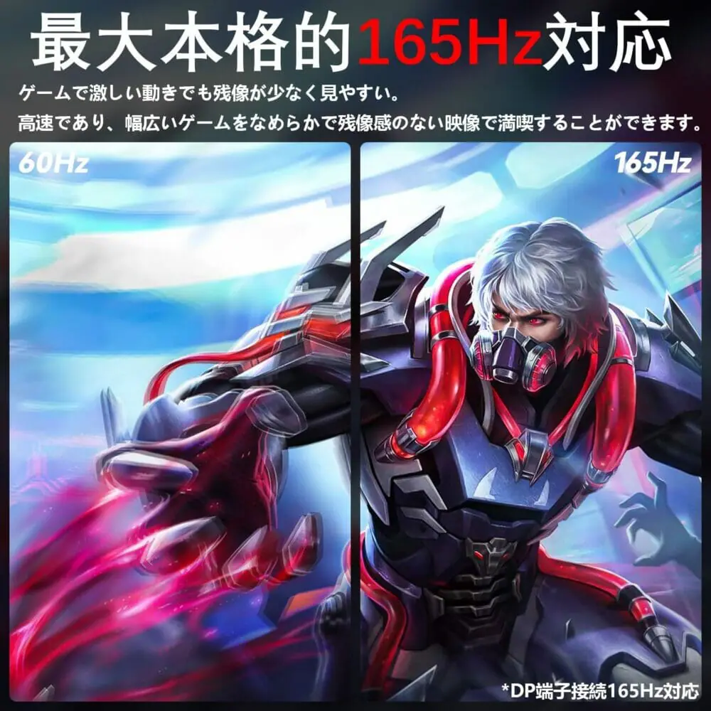 | リフレッシュレート | 最高165Hz(165HzはDP端子対応可能、HDMI端子は最大120Hz) |