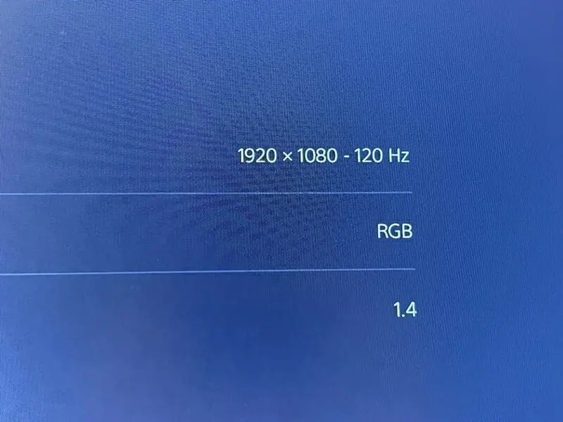 ▼ゲーム側の設定で120Hzリフレッシュレートを指定。DP端子は最大165Hzまで、HDMI端子は最大120Hzまで対応可能となっている。