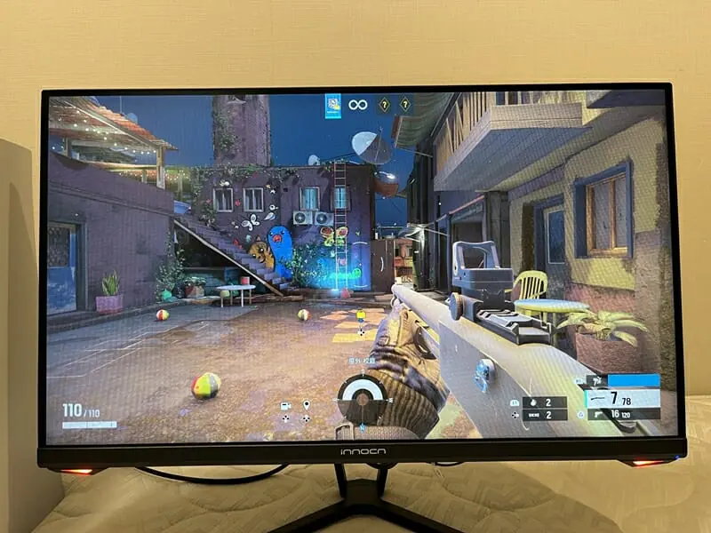 120Hzの高リフレッシュレートでプレイするゲームは非常に滑らかで遅延もなく、画面を激しく動かした場合でも酔いを感じづらい。