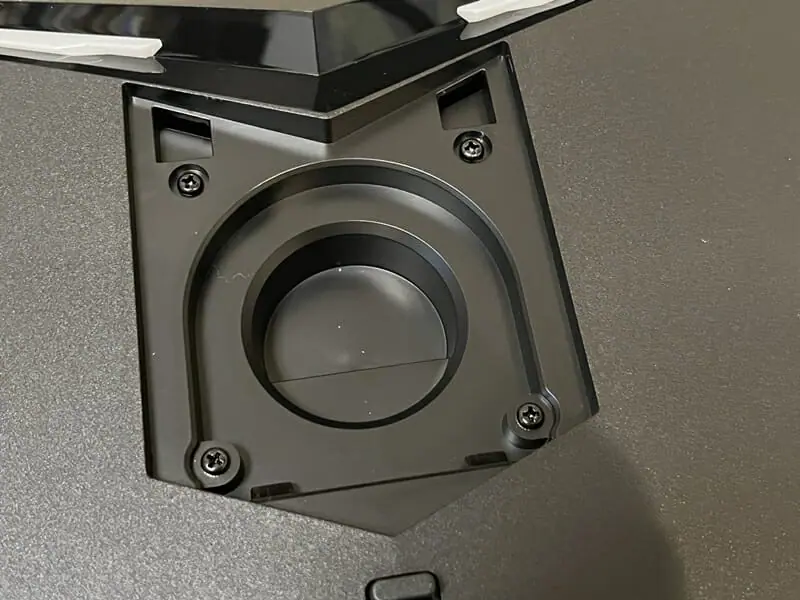 ▼フタを取り外した跡には、モニターアームや壁付け金具等を取り付けることも可能。