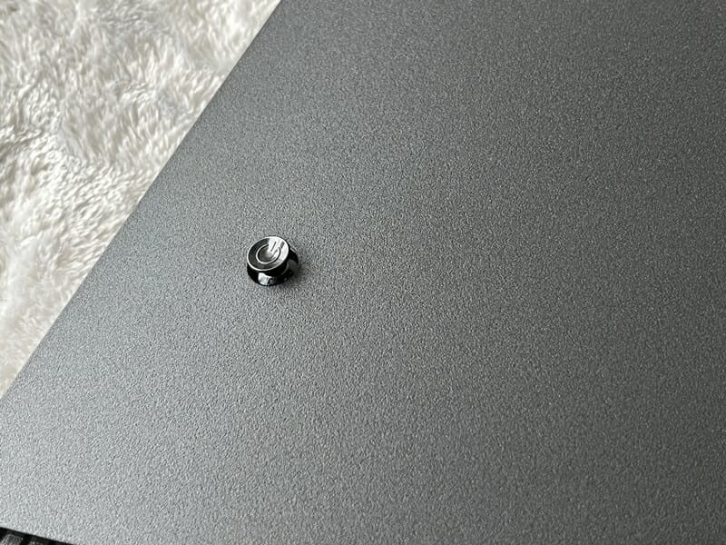 ▼背面左下には電源ボタンを兼ねた操作用アナログスティックが用意。