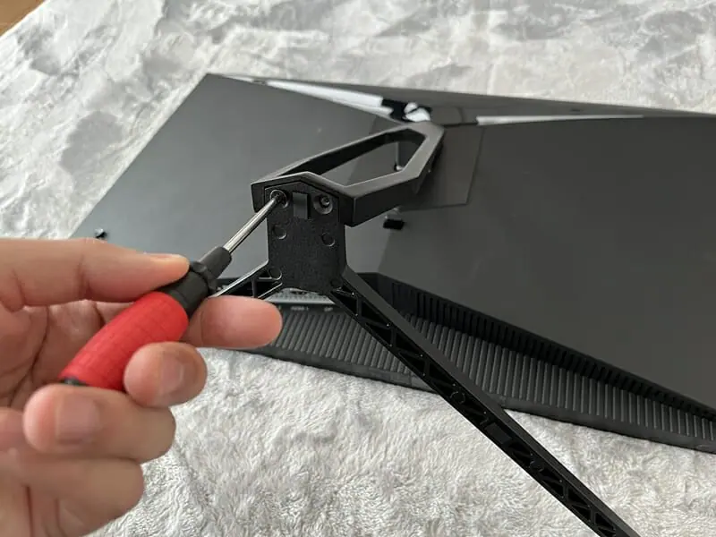 そしてスタンドとフタを、付属のビスとドライバーを利用して取り付ける。