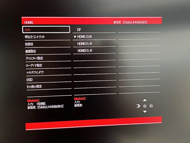 ▼Display Port(1.2) x1、HDMI (v1.4) x2、HDMI (v2.0) x1、Audio out x1 が用意。このうちHDMI 3が最高144Hzリフレッシュレートに対応している。
