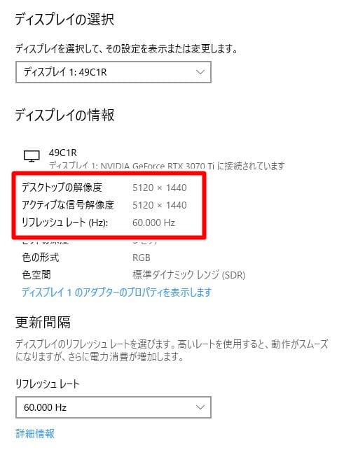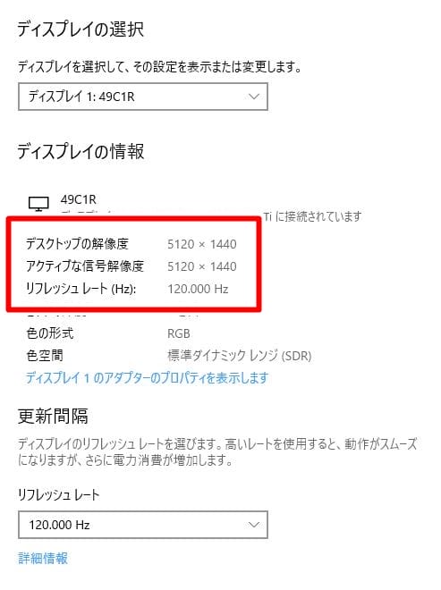 また、「PHILIPS 499P9H1/11」は最大70Hzまでしかリフレッシュレートが出ないが、「Innocn 49C1R」はディスプレイポート(DP)接続時に最大120Hzの高リフレッシュレート描画に対応しており、ゲーミングに関しては「Innocn 49C1R」の方が向いていると言えるだろう。