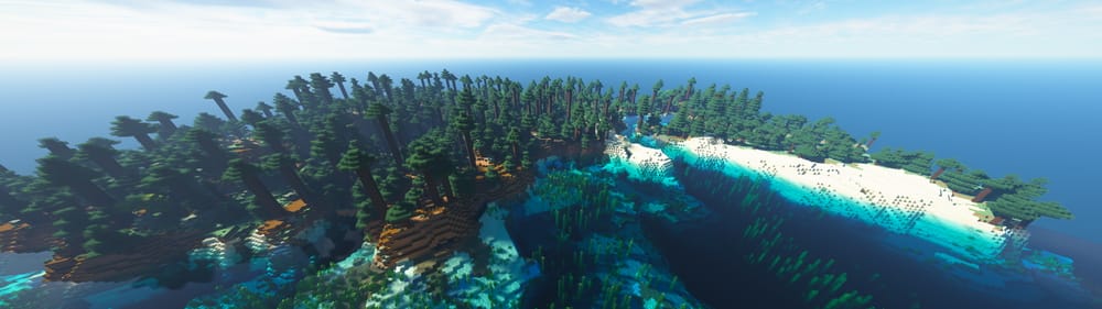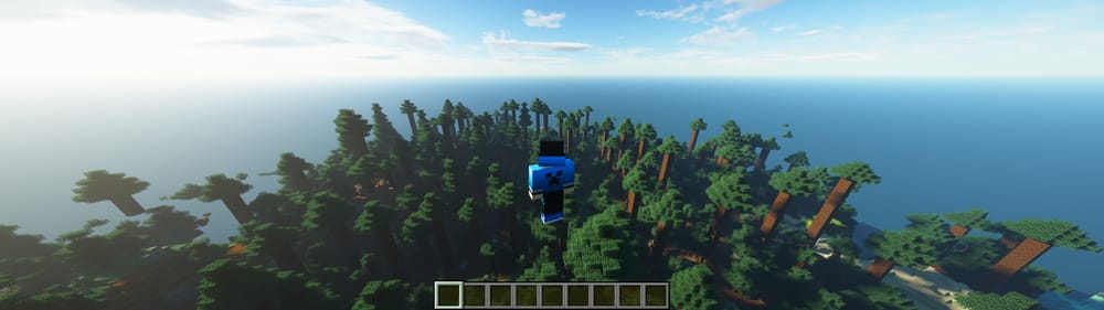 PC(Java)版マインクラフトを遊んだ場合。下画像を見ても分かる通り、非常に広い表示領域を実現できている。