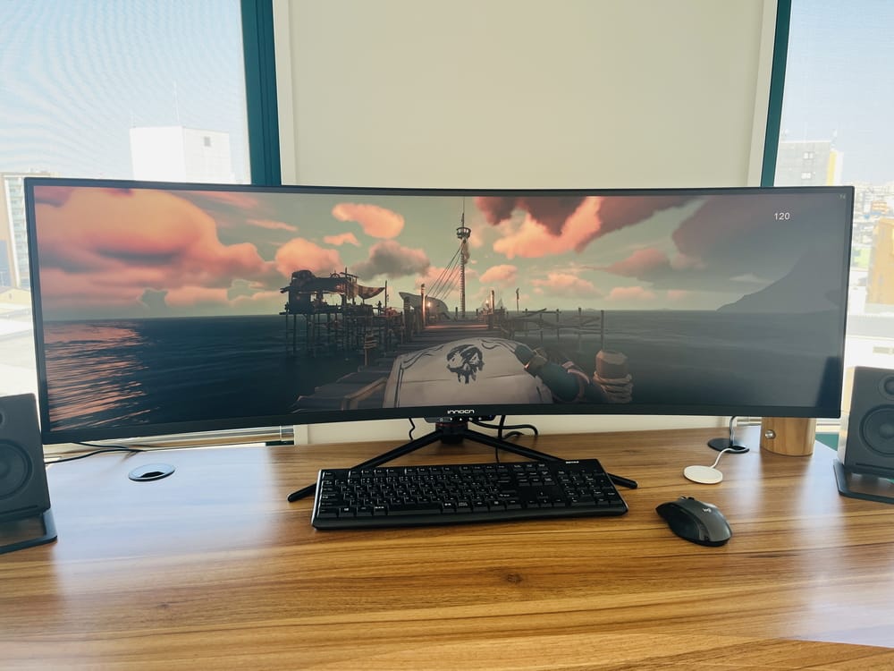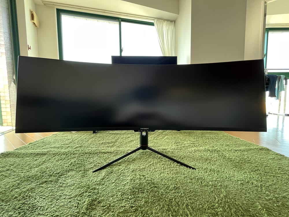 『Innocn 49C1R』のモニター幅は120cmと非常に長く、小さなテーブルでは収まりきらないだろう。
