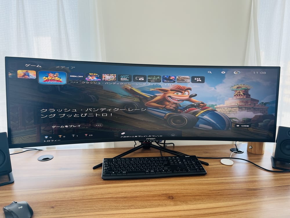 そのため今回のPS5の例のように、16:9の映像が無理やり32:9に引き延ばされてしまい、どうしても違和感が出てしまうのだ。