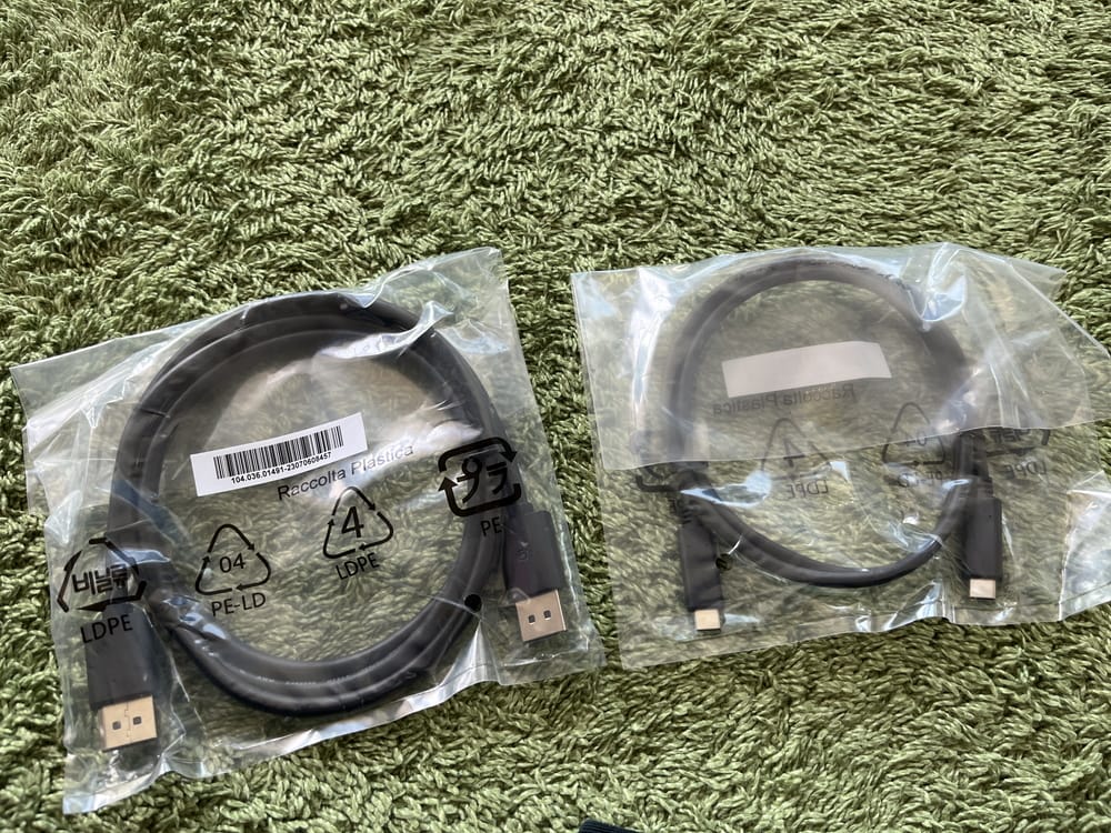 ▼外部デバイス接続用のDPケーブル、Type-Cケーブルが付属。自前でケーブルを用意せずに済む点は嬉しい。