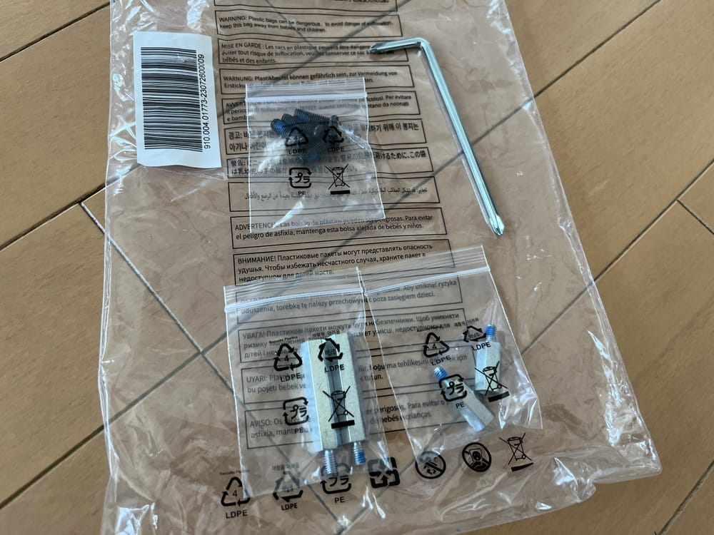 ▼スタンドとベースを組み立てる際に使用するビス&工具一式が付属。