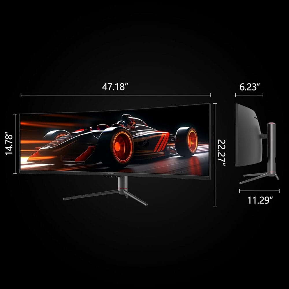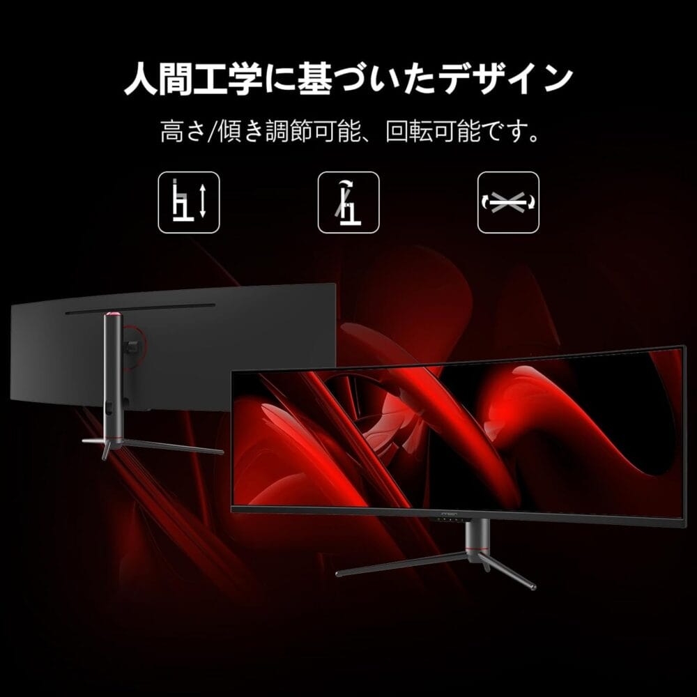 モニター部分のサイズは47.18×14.78×6.23cmと大型であり、32:9の非常に横長な49インチディスプレイを搭載。一般的な16:9アス比のディスプレイの2倍もの表示域を擁している。
