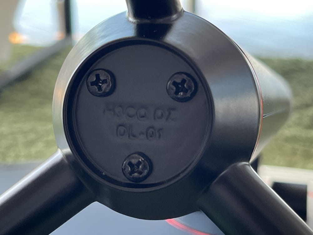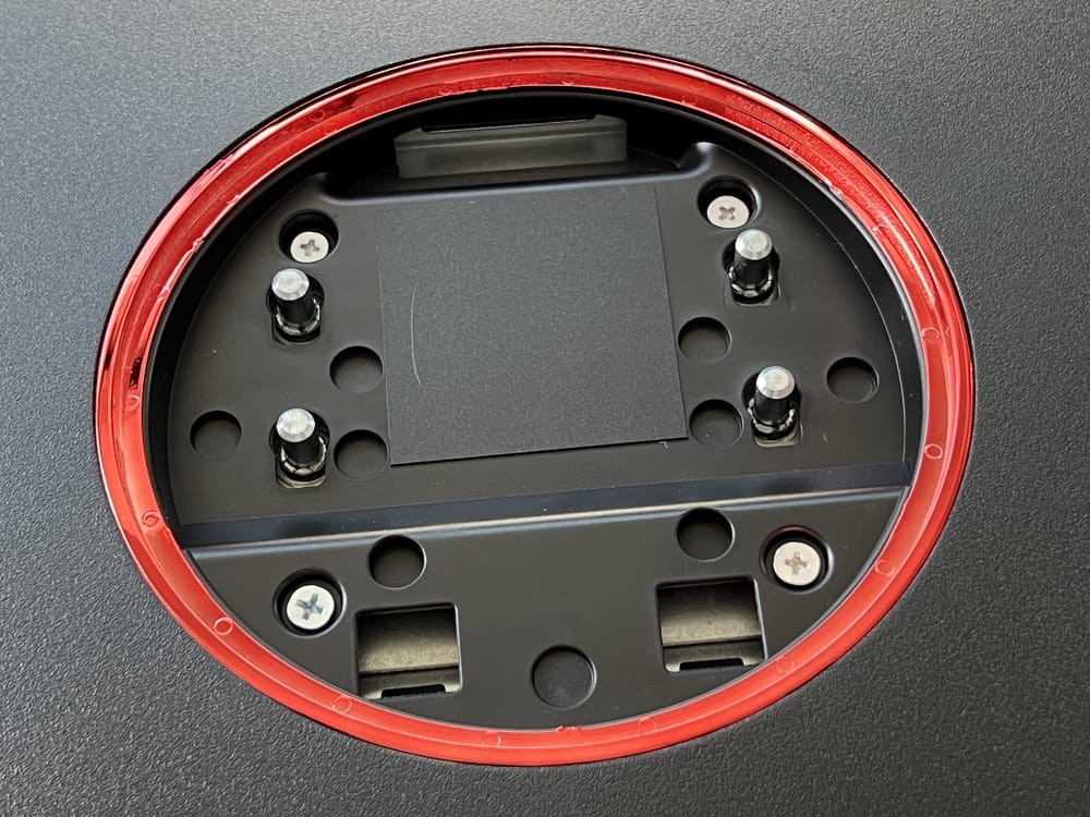 ▼スタンド下部にはコード類を束ねておくことの出来る穴が空いている。