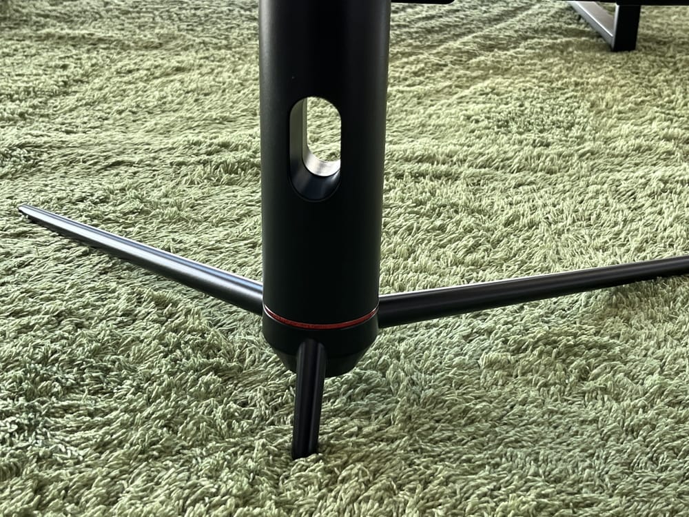 ▼ベース部分がV字に開いており、キーボードなどを設置できるスペースが空く点が、個人的には嬉しかった。