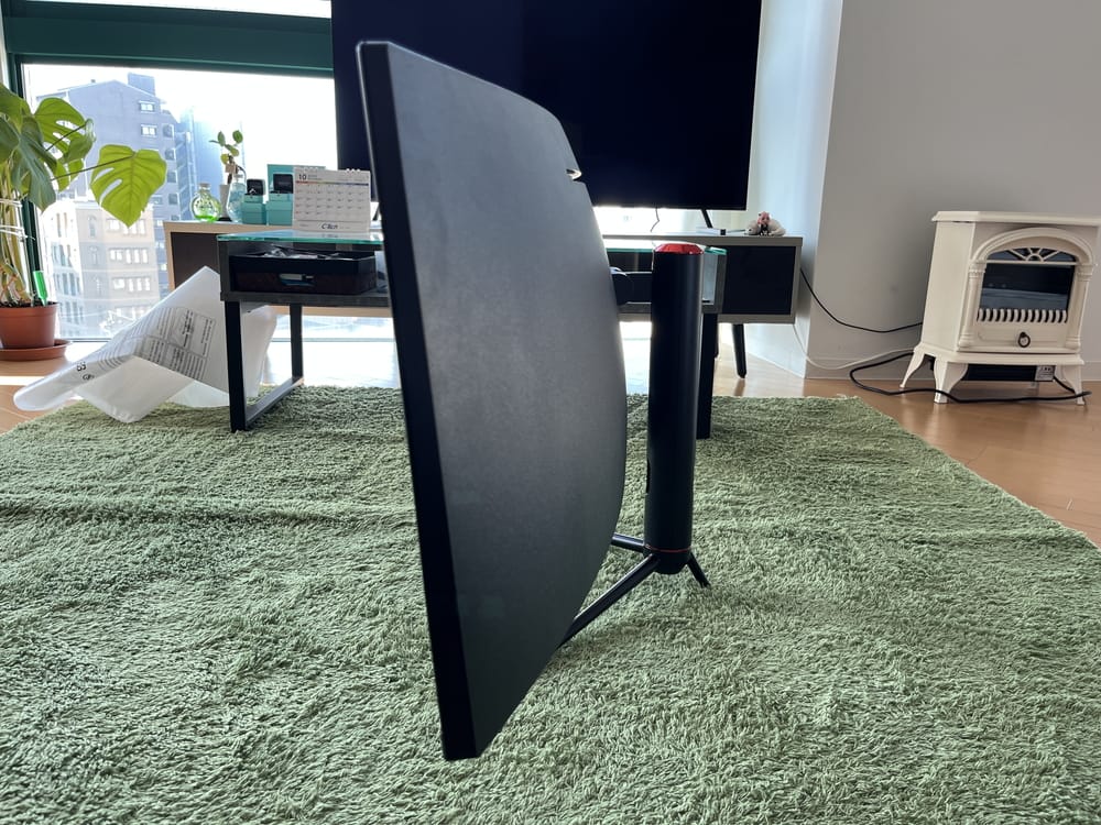 サイズ自体は非常に大きく、そして横に長い。一般的な16:9モニターをつ横に並べた場合と同等のサイズ感だ。