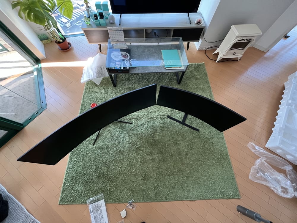 ▼私が普段愛用している34インチ曲面ディスプレイ「HUAWEI MateView GT 34-inch Standard Edition」を設置していた時の様子。