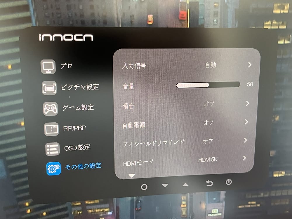 本製品下部のボタンを操作すると、オプション画面を呼び出すことができる。
