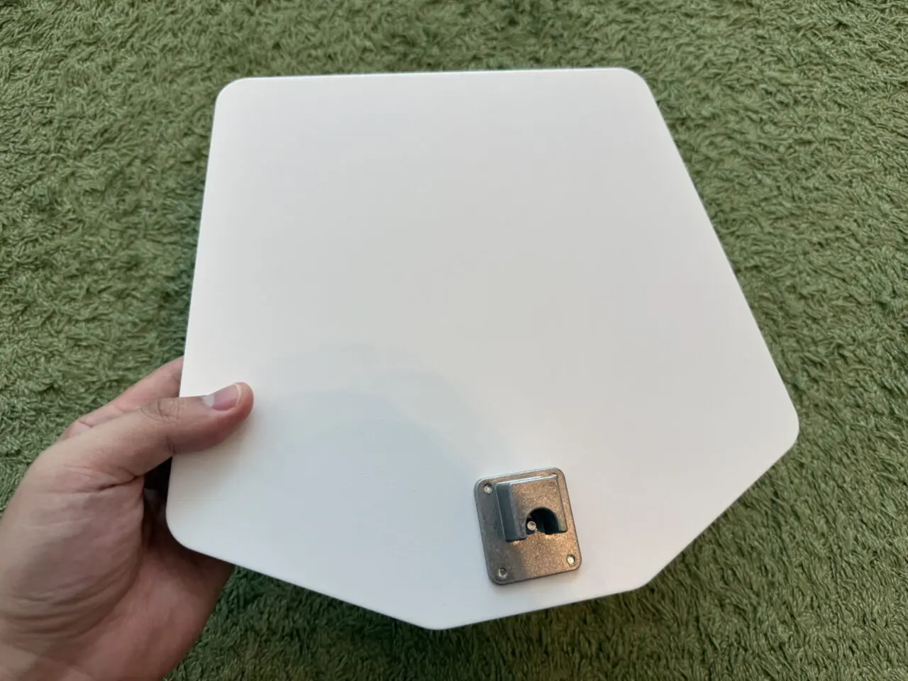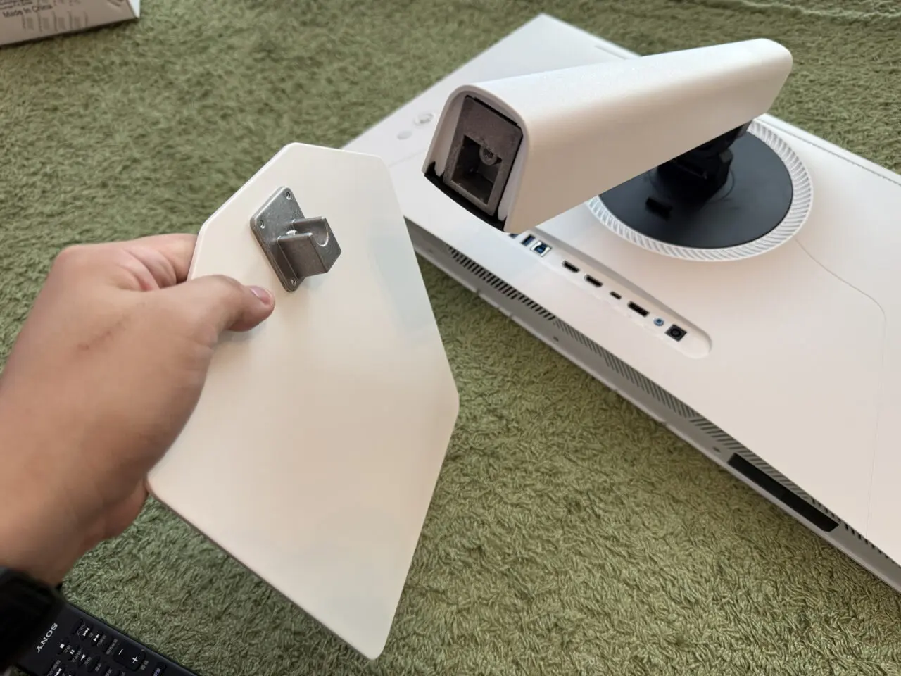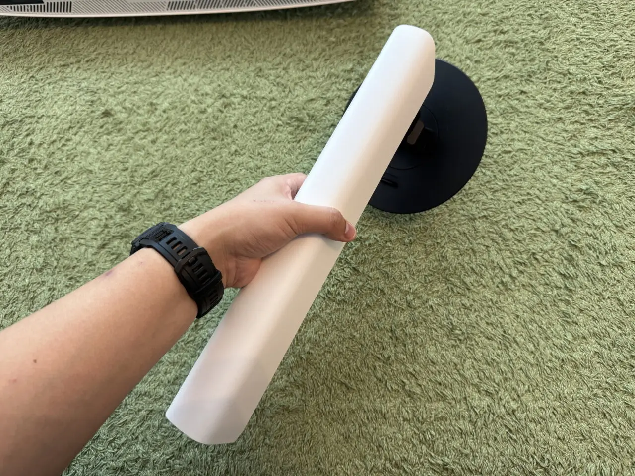 INNOCN GA27V1Mのベースを手に持っている様子