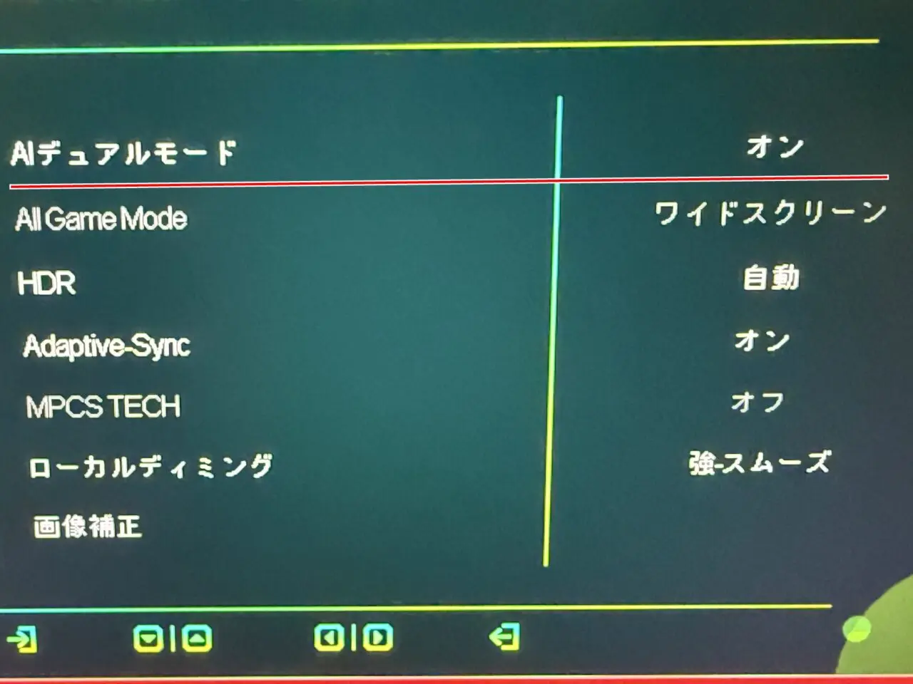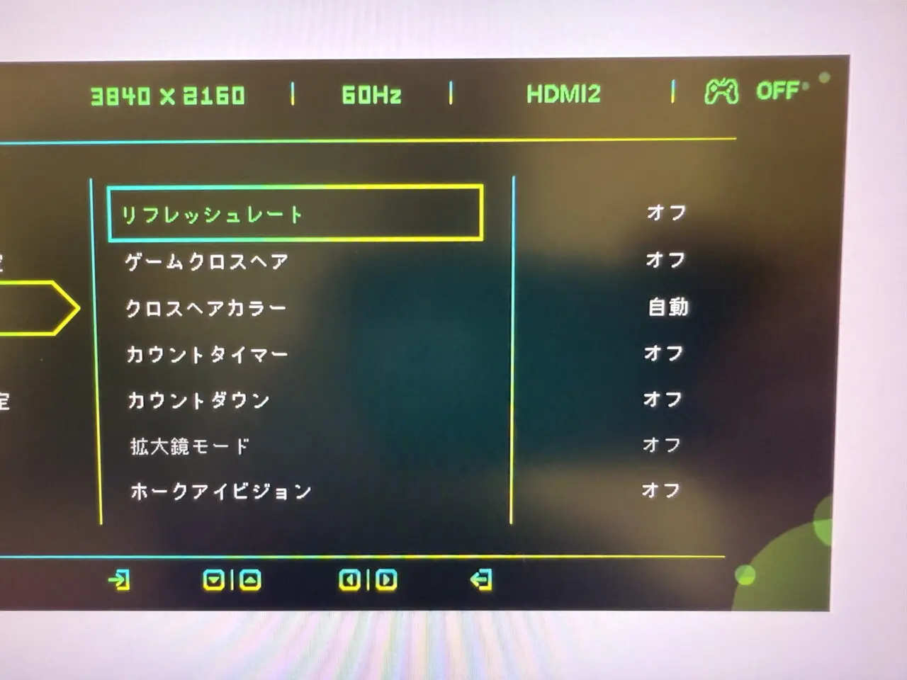 INNOCN GA27V1Mモニター本体の外観(背面左側のボタン)