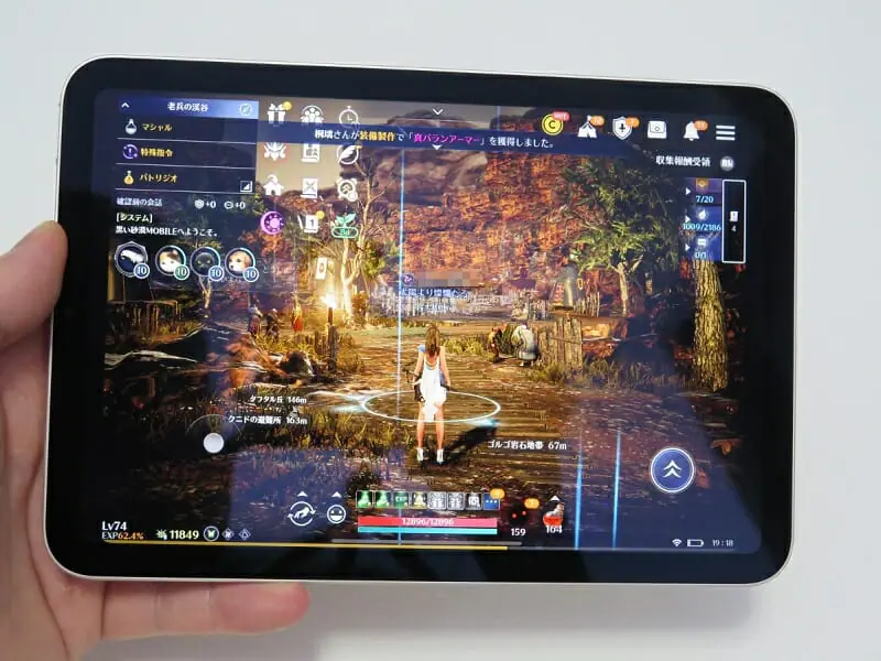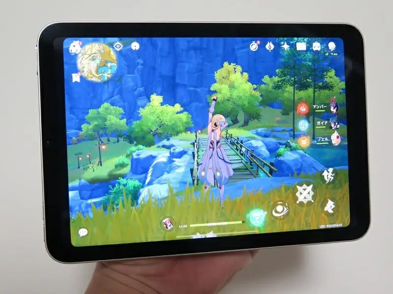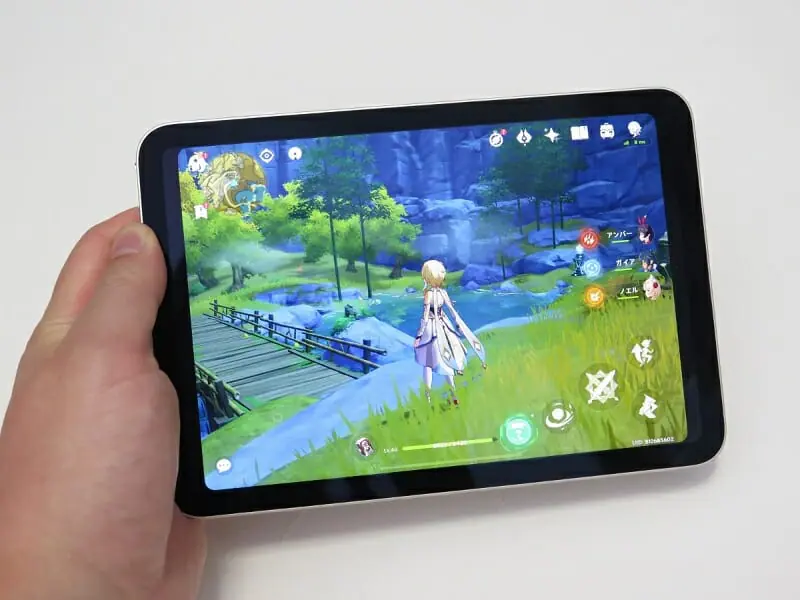 先述の通りiPad miniは発熱に余裕があるため、長時間『原神』をプレイしていても本体の熱で手が不快になることはない。唯一ネックは、やはりディスプレイで、両手をかざすと左右の可視領域が狭くなる。また、4:3のため左右が余計狭い印象だ。