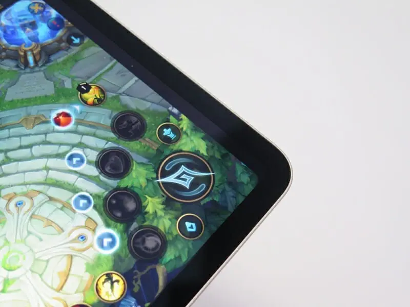 実際にゲームをプレイしてみたが、『原神』や『リーグ・オブ・レジェンド:ワイルドリフト』だと、従来のiPadの4:3に最適化されているタイトルが多いため、スマートフォンと比べるとコントローラのUIに若干押される印象があり、左右の視野角が狭い印象は拭えない。一方で『ウマ娘プリティーダービー』は、縦持ちも横持ちもあるが、若干解像度が物足りずジャギーが目立つ印象だった。