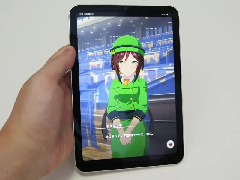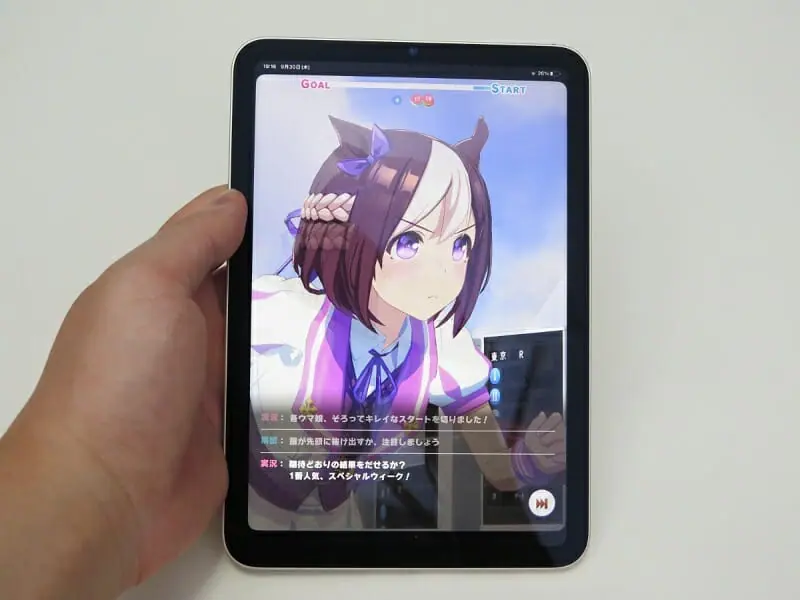 ネックは、ウマ娘プリティーダービーがiPad mini向けにレンダリングを最適化していない点で、背景やウマ娘自身かなりジャギーが目立ってしまう。離れて見れば気にならないが、筆者は気になった。残念ながら相性はイマイチで、ウマ娘側の対応を待ちたい。