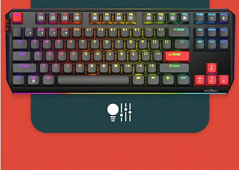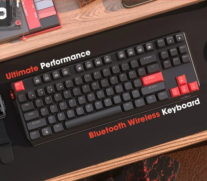 筐体側面にマルチメディアボリュームノブを備えた87キーのTKLレイアウトとなっており、各キーは競合しないように配置されているため、ユーザーは正確なキーストロークとスムーズな入力を行うことができる。