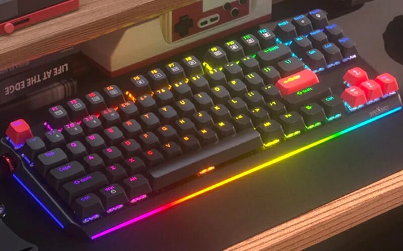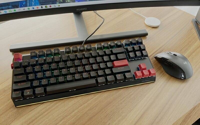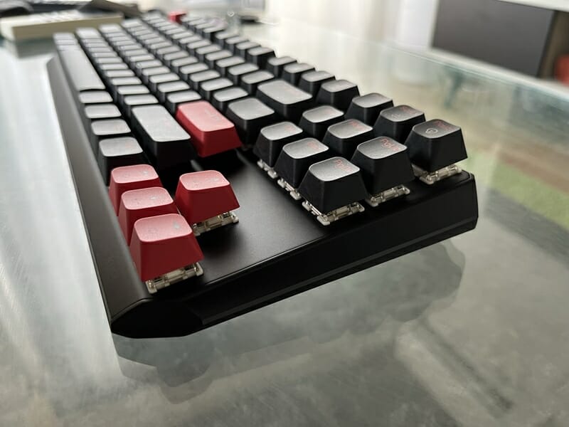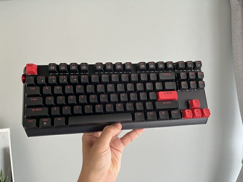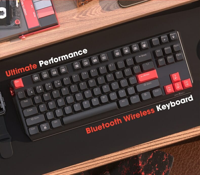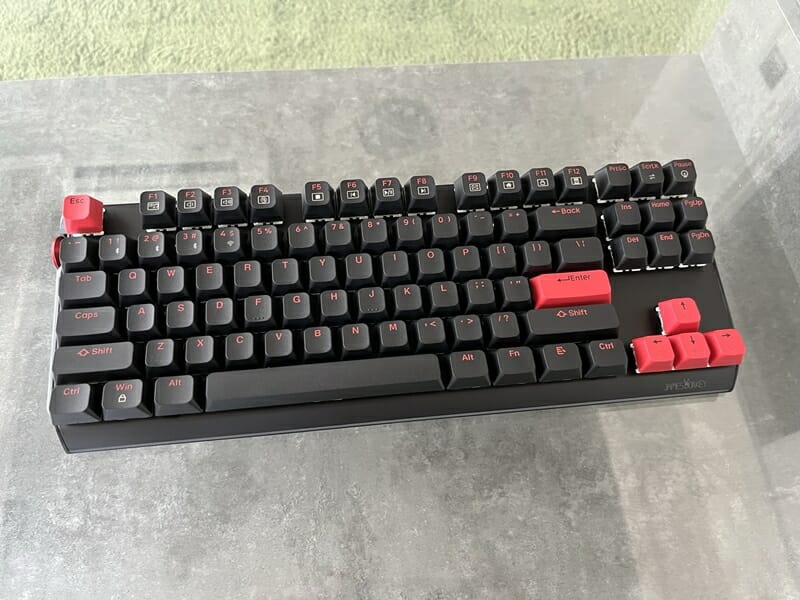 筐体側面にマルチメディアボリュームノブを備えた87キーのTKLレイアウトとなっており、各キーは競合しないように配置されているため、ユーザーは正確なキーストロークとスムーズな入力を行うことができる。