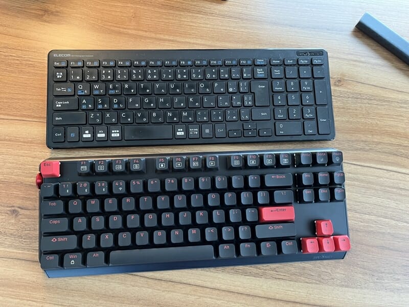 ▼私が普段使用しているキーボード(上)と本製品(下)を並べた様子。