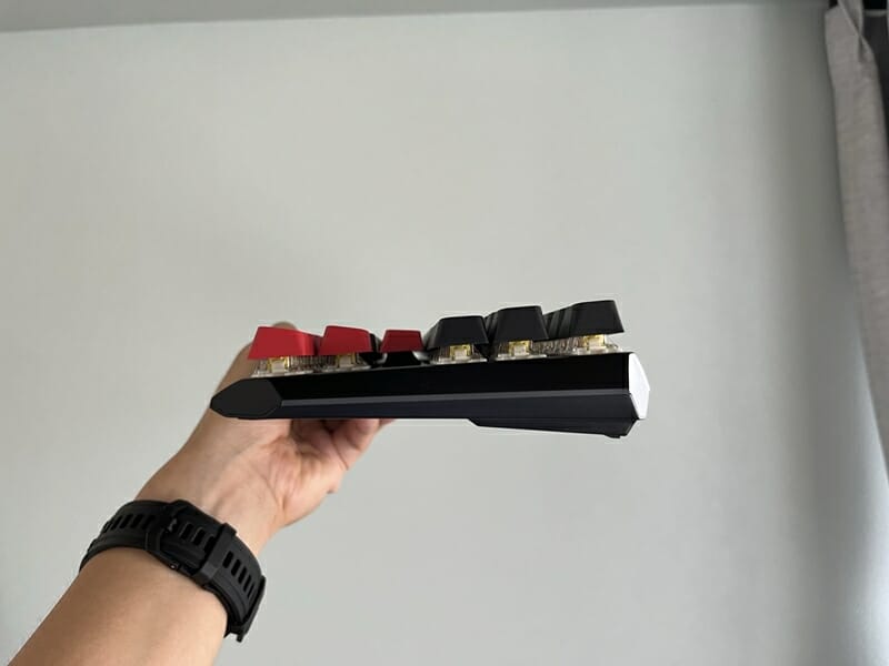 ▼キーボード本体の外観。アルミニウム合金フレームを備え、そこそこ高級感のあるデザインに仕上がっている。