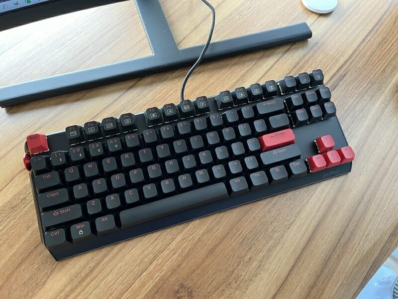 87鍵(テンキーレス)のゲーミングキーボードであり、ボリュームノブを備えているなどユニークな特徴も持ち合わせている。
