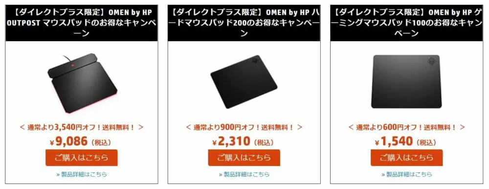 ▼マウスパッドなどのちょっとした周辺機器もお得に購入することが可能です。