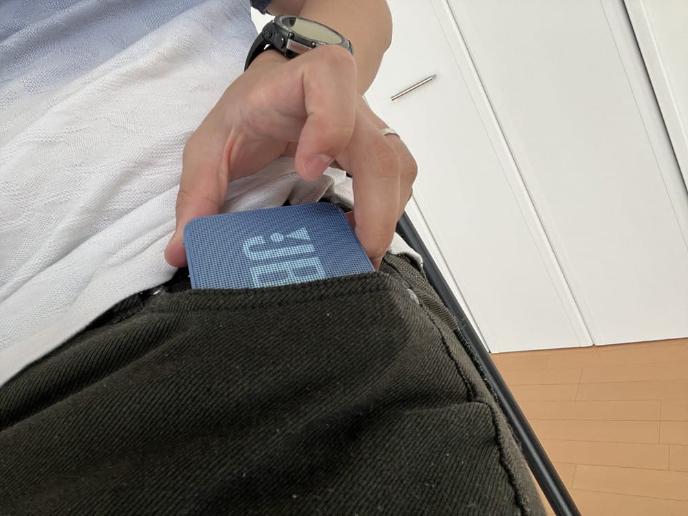 ▼ズボンのポケットにもラクラク収まるほどのサイズ。