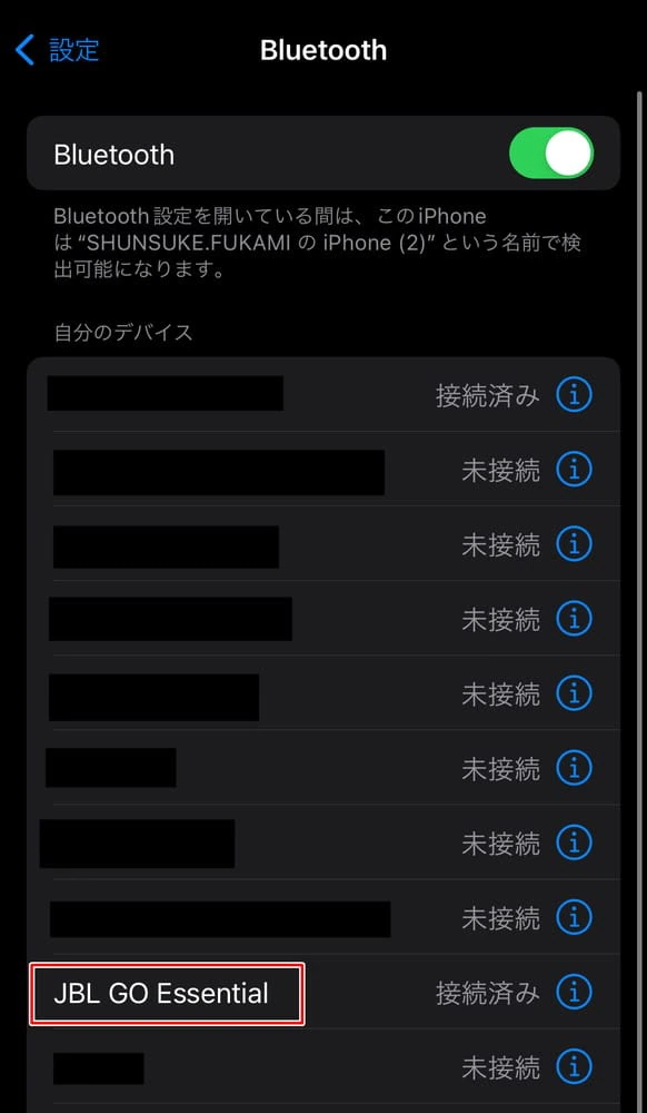 あとは、接続したいスマホなどのデバイス側で「JBL GO Essential」を選択しよう。