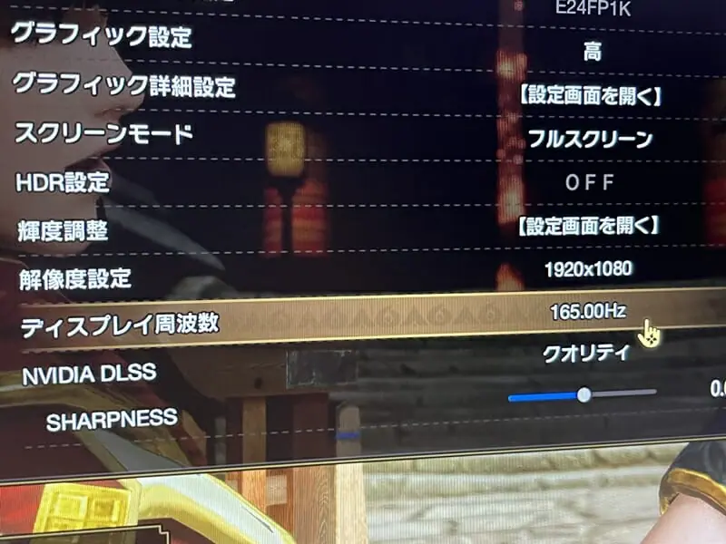 ▼ゲーム側の設定で165Hzリフレッシュレートを指定。