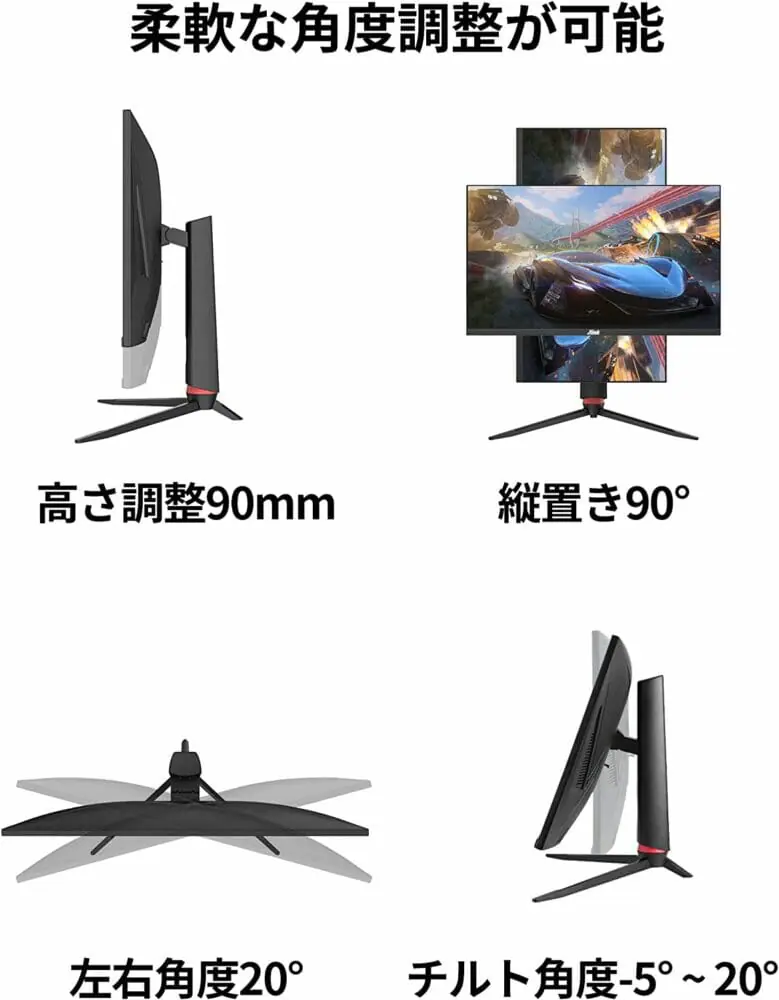 以上の通り、ハード面・ソフト面ともにゲーミングに適した設計がなされた、高性能モニターとなっている。