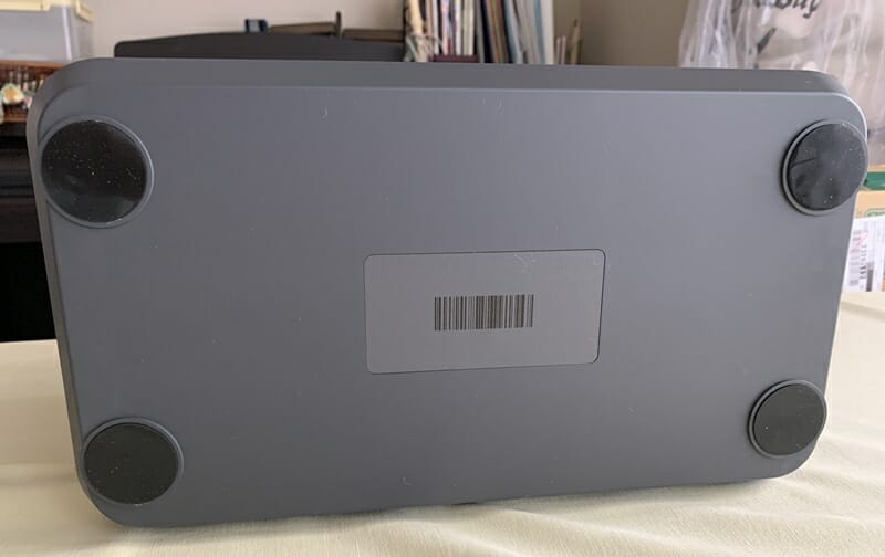 ▼本体底部には、四隅にゴム製の滑り止めが施されている。多少の傾斜であれば滑り落ちることはない。