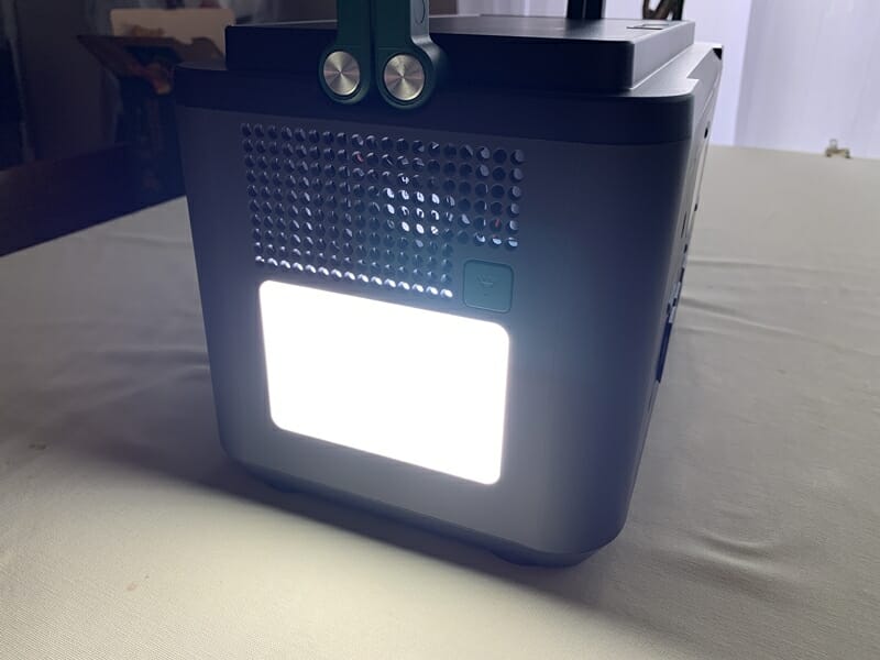 左側面のLEDライトは強力な出力を擁しており、停電時の懐中電灯代わりになるほか、夜間の非常灯としても機能する。