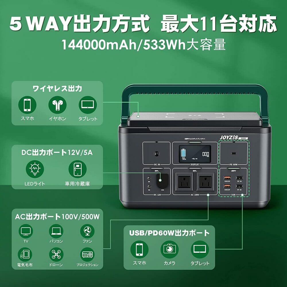 今回紹介した『Joyzis ポータブル電源』(500W)の特長をまとめると以下の通りだ。