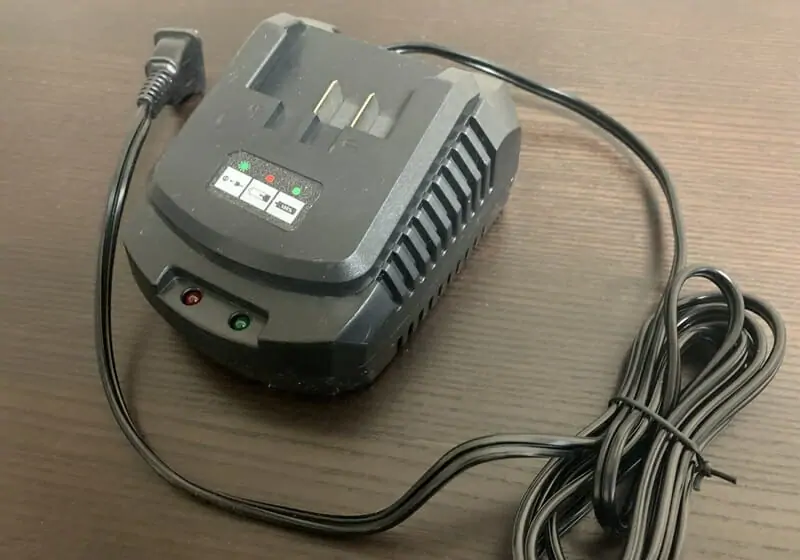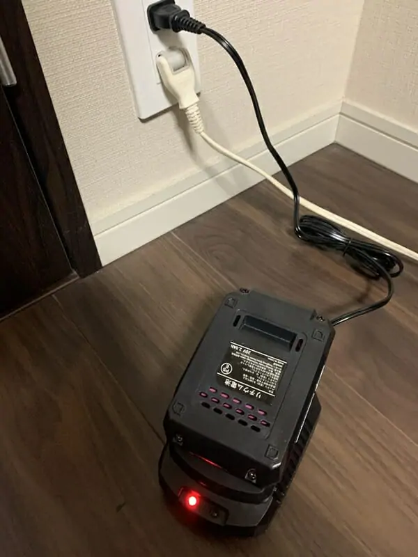 充電中は赤ランプが点灯。充電が完了すると緑色の点灯に変化する。
