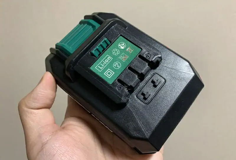 ▼バッテリーをスライドさせて取り付けることで、使用が可能になる。