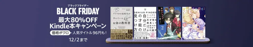 - Kindleブラックフライデーセール:2021年11月19日(金)~2021年12月2日(木)(日本時間)
