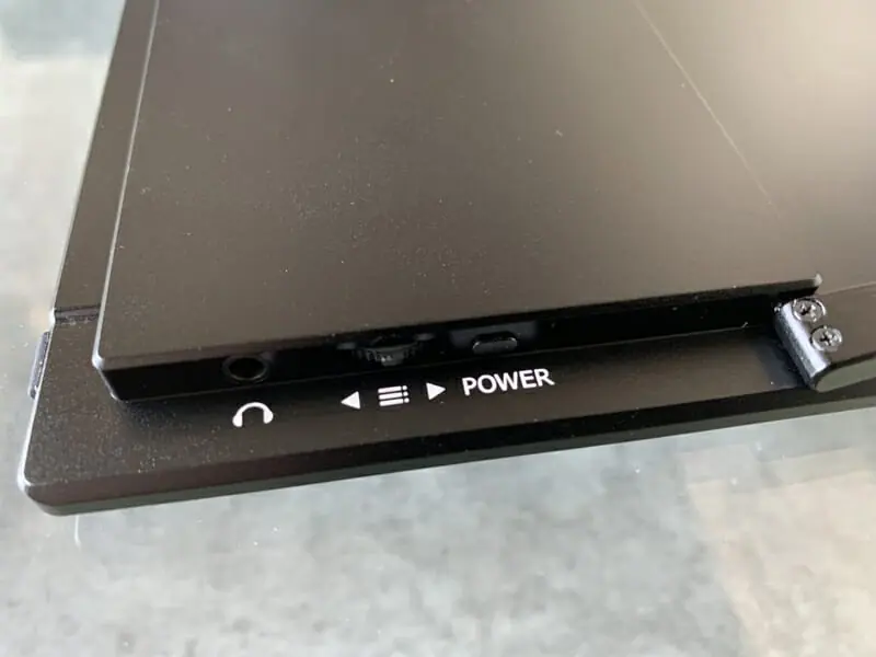 ▼正面から見て左側面には、3.5mmオーディオジャック、操作ダイヤル、電源ボタンが用意。