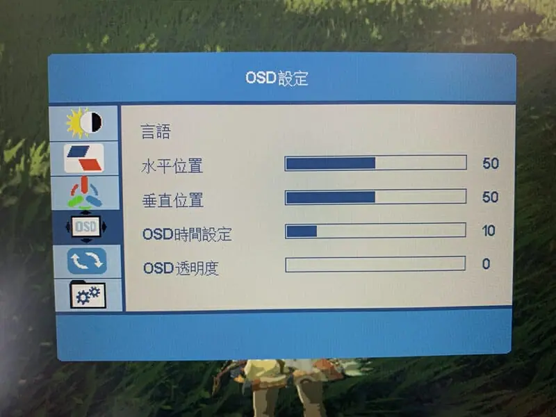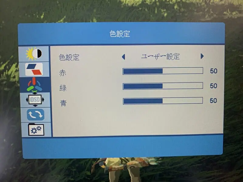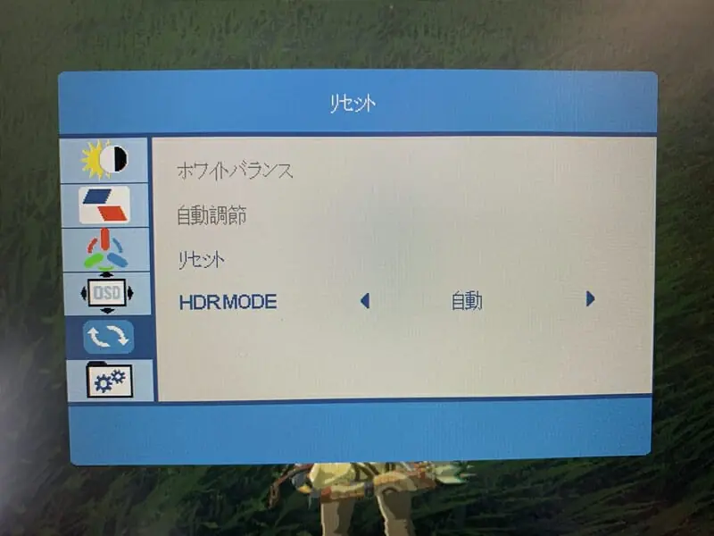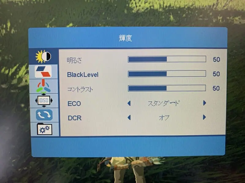 メニュー画面では明るさやコントラストなど、映像に関する一般的なパラメータの調節を行うことが出来る。